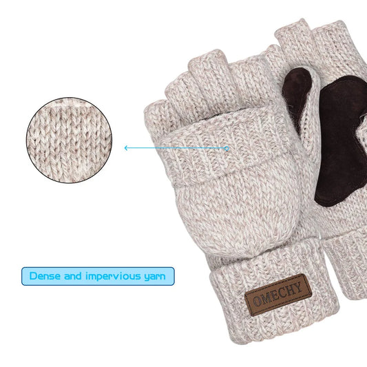 COOPLUS Mittens Winter Fingerless Gloves Warm Wool Knitted Gloves Convertible Gloves for Men and Women