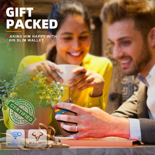 BULLIANT Magnetic Closure Slim Wallet-Genuine Leather Front Pocket Wallet for Men,RFID Blocking,Holds 12 Cards and Money Clip