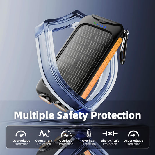 Solar Charger Power Bank 49800mAh - Portable Fast Charging Power Bank with Type-C & Dual USB Ports, Compatible with iPhone, Samsung & More, Waterproof Solar Panel for Camping, Hiking, and Outdoor Use