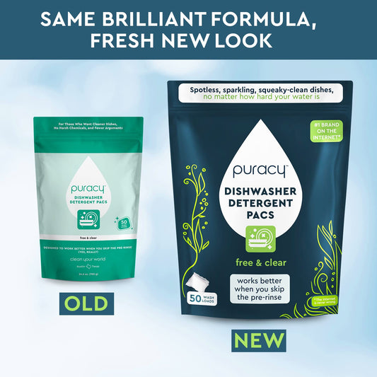Puracy Dishwasher Pods, Natural Dishwasher Detergent, Free & Clear Dish tabs - Enzyme-Powered, Spot & Residue Free - TikTok Trend Items, Must Haves from TikTok Made Me Buy It (Free & Clear, 50 Count)