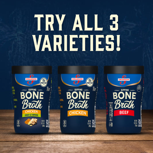 Swanson Sipping Bone Broth, Chicken Bone Broth with Ginger & Turmeric, 10.75 Ounce Sipping Cup (Pack of 8)
