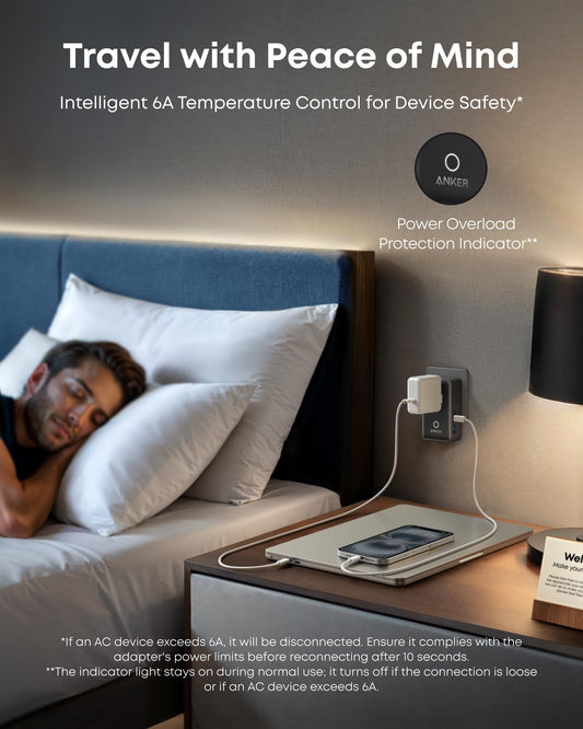 Anker Nano Travel Adapter, 5-Port Power Adapter with 1 AC, 2 USB-A, and 2 USB-C Ports, Smart Temperature Control, Compatible with Over 200 Countries, Ideal for Travel (1-Pack)