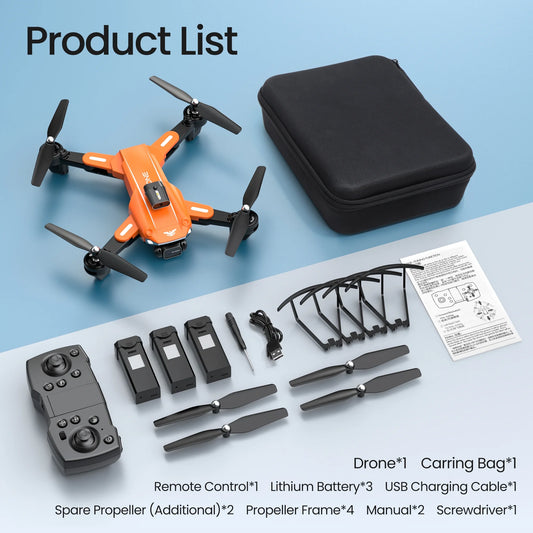 D89 Drone with Camera for Adults and Kids, FPV RC Quadcopter with 4K HD Dual Camera and Obstacle Avoidance, 3 Batteries, Orange
