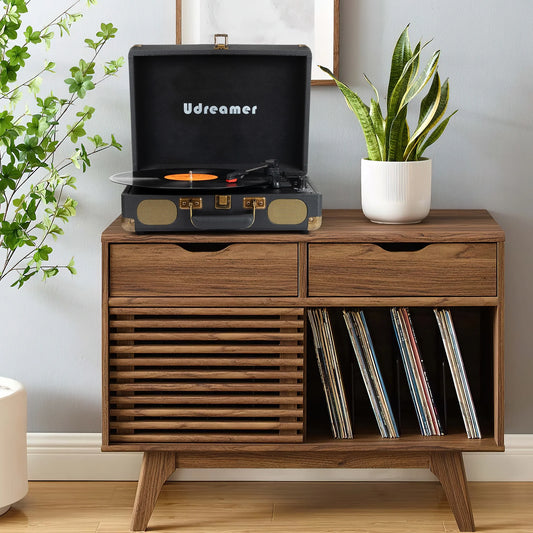 Udreamer Bluetooth Portable Suitcase Record Player with 3-speed Turntable & Built-in Speakers | Black