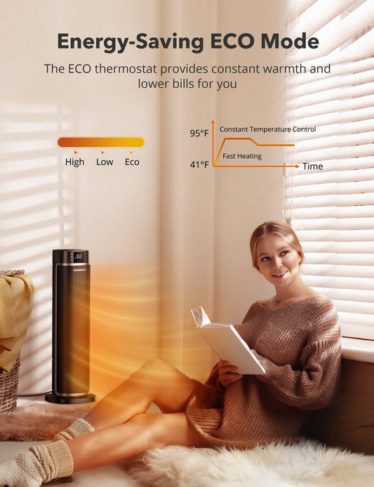 TaoTronics Space Heater, 24'' Indoor Tower Heater, Electric Heater for Inside Home, 1500W Portable Heater with Remote/APP, 70° Oscillating Heater, 12H Timer, PTC Ceramic Heater for Inside