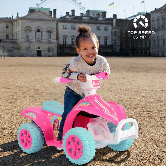 Barbie ATV Quad, 6V Battery Powered Ride On for Kids Ages 1.5+, Pink