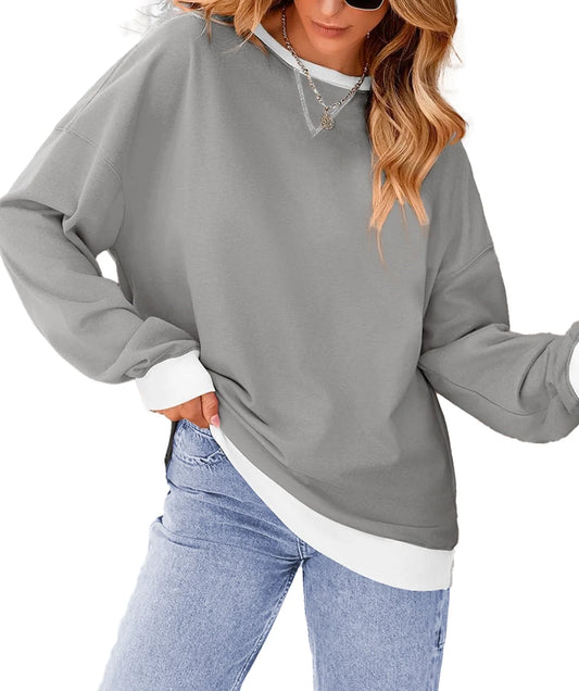 Fantaslook Color Block Sweatshirts for Women Crewneck Long Sleeve Oversized Pullover Tops Casual Fall Outfits