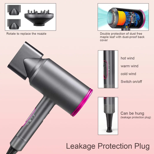Ionic Hair Dryer with Diffuser, Jungle Wave 1800W Blow Dryer for Hair Care, Powerful Hot/Cool Wind, Gray