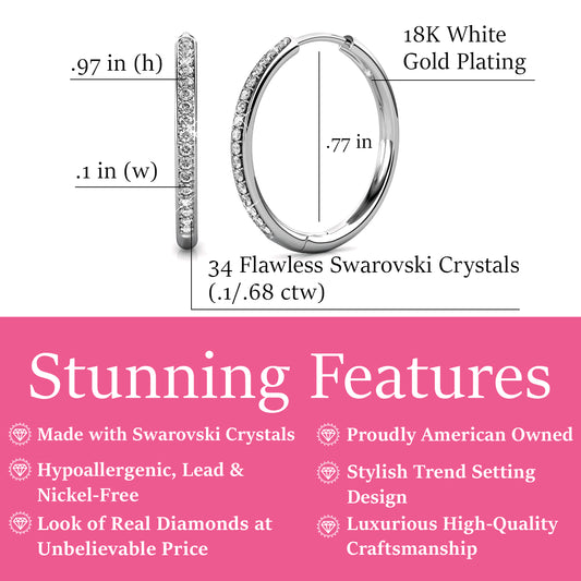 Cate & Chloe Bianca 18k White Gold Drop Dangle Hoop Earrings with Swarovski Crystals Gift for Women