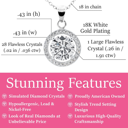 Cate & Chloe Blake 18k White Gold Plated Halo Pendant Necklace with Simulated Crystals for Women