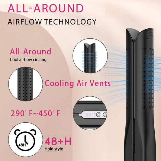 Nicebay Hair Straightener, Airflow Styling, 1 inch Curling Wand Cool Air Vent, 5 Temp, Dual Voltage
