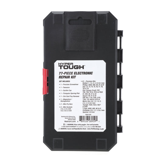 Hyper Tough 77 Piece Precision Tool Kit with Magnetic Screwdriver, Standard Size Bits, and Case, New Condition,