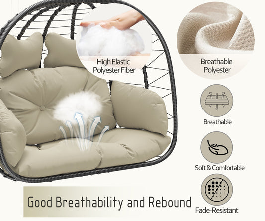 Bifanuo Double Wicker Swing Egg Chair Hammock Foldable Hanging Loveseat with Stand, UV Resistant Removable Cushions, 700LBS Capacity for Bedroom, Balcony (Black and Beige)