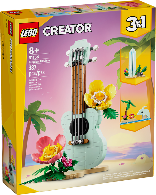 LEGO Creator 3 in 1 Tropical Ukulele Instrument Toy, Transforms from Ukulele to Surfboard Toy to Dolphin Toy, Sea Animal Toy, Beach-Themed Birthday Gift Idea for Girls and Boys Ages 8 and Up, 31156