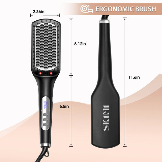 SKIMI Hair Straightening Brush, Ionic Hair Straightener Comb, LED Display, Ceramic Coating
