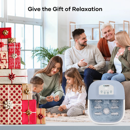 Naipo Foot Spa Bath Massager with Fast Heating, Rich Bubble, Vibration, Rollers, Lower Noise - Blue