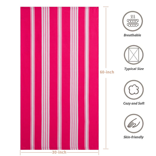 Smuge 2 Pack Oversized Cabana Stripe Beach Towels, 60x30 inches Microfiber Outdoor Large Swim Towel for Adults (Rose Red)