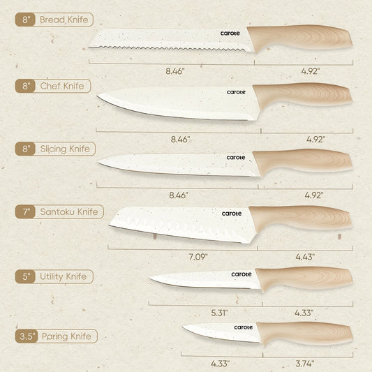 CAROTE 12PCS Knife Set with Blade Guards, White Granite Ceramic Coating, Stainless Steel Blade, Safe