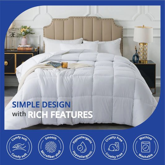 Downcool Full/Queen Comforter, White | All Season Hotel Down Alternative Duvet Insert, Adult, Unisex, 88x92in