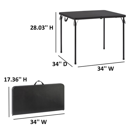 Mainstays 34" Square Resin Fold-in-Half Table, Rich Black