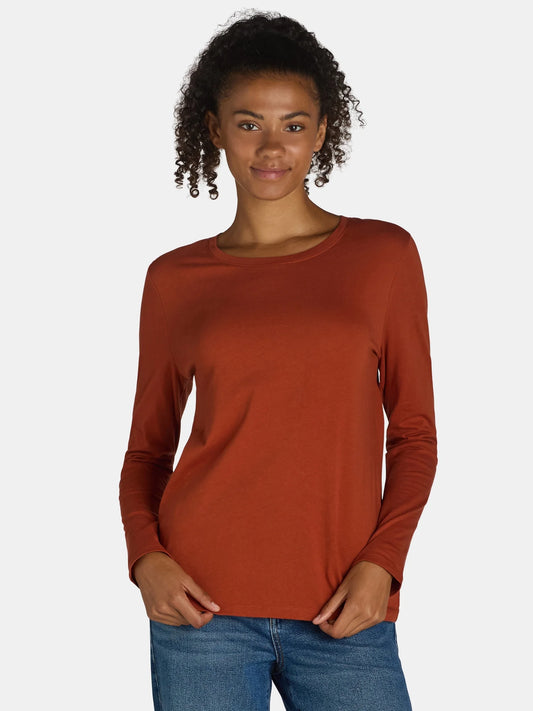 Time and Tru Women's Cotton Crewneck Tee with Long Sleeves, Single and 3 Pack, Sizes XS-XXXL