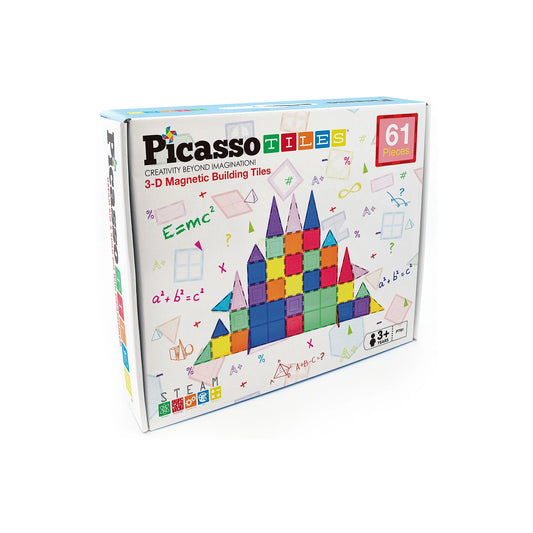 PicassoTiles 61 PC Magnetic Tiles, Magnetic Building Blocks for Kids, Magnet for Kids 3+