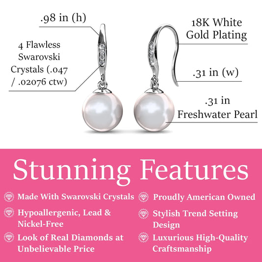 Cate & Chloe Betty 18k White Gold Plated Pearl Drop Earrings with Swarovski Crystals Gift for Women
