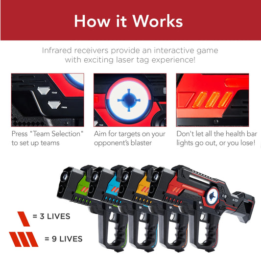 Best Choice Products Set of 4 Laser Tag Blasters, Infrared Toy Set Multiplayer Game for All Ages w/ Lights & Sounds