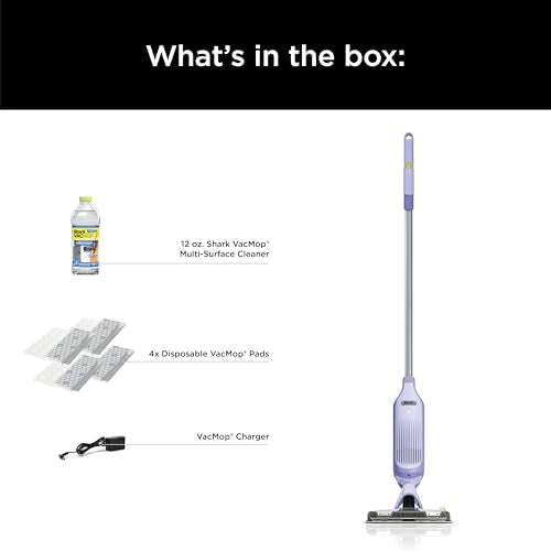 Shark VACMOP Cordless Hard Floor Cleaner, Vacuum and Spray Mop, Powerful Suction, Lightweight, LED Headlights, Includes 4 Disposable Pads, 12oz Multi-surface Cleaning Solution, Lavender, VM252PL