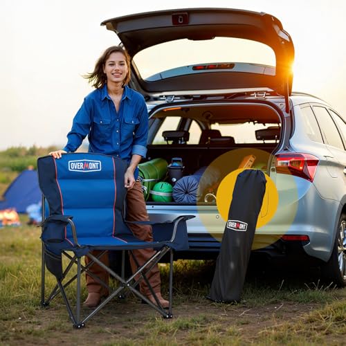 Overmont Oversized Folding Camping Chair - 450lbs Support with Padded Cushion Cooler Pockets - Heavy Duty Collapsible Chairs for Sports Garden Beach Fishing Blue