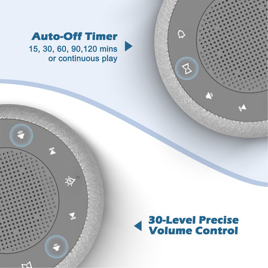 Buffbee Sound Machine & Alarm Clock 2-in-1, 18 Soothing Sound, 7 Night Light, Sleep Timer, Precise 30-Level Volume Control White Noise Machine