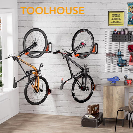 2-Pack Swivel Bike Rack Wall Mount, Bike Hangers for Garage, Space-Saving Vertical Bike Holder, Holds up to 77 lbs, Bicycle Wall Hanger Storage, No Heavy Lifting Required Indoor Hanging Bike Rack