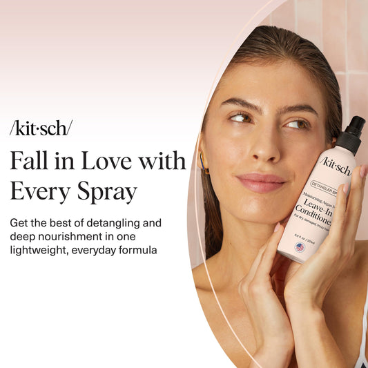 Kitsch Argan Milk Leave In Conditioner Spray – Lightweight Moisturizing Hair Spray for Women and Men - Hair Detangler Spray for Curly, Wavy, Fine, Dry & Damaged Hair - Silicone-Free - 6.8oz