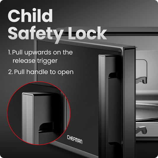 Chefman Countertop Microwave Oven 0.7 Cu. Ft., 700 Watts with 10 Power Levels, 6 Cooking Presets with One-Touch Express Cook, Eco Mode, Child Safety Lock, & Mute Button - Black