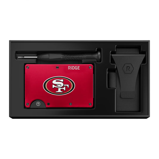 The Ridge NFL Wallet - San Francisco 49ers - Slim Wallet, Card Holder, Carry up to 12 Cards RFID Safe, Blocks Chip Readers, Minimalist Wallet With Cash Strap & Extra Money Clip