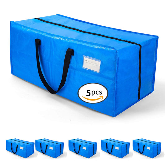 AlexHome Heavy Duty,Extra Large Packing Bags for Moving,Reusable Plastic Moving Totes,Clothes Storage Containers,Moving Supplies Bins,Compatible with Ikea Frakta Cart (Blue,Set of 5)
