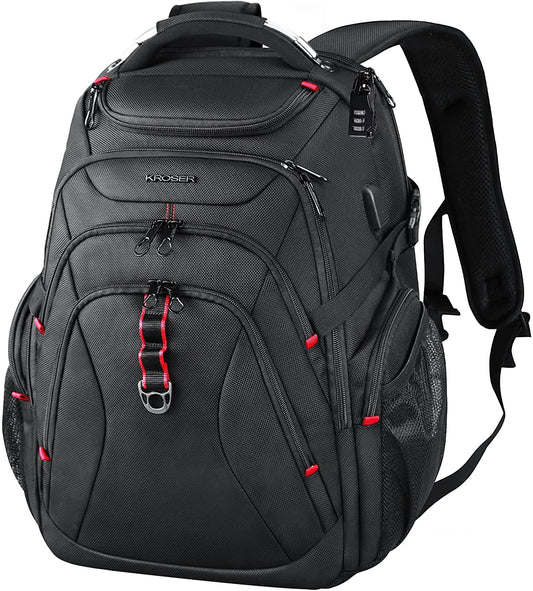 KROSER Travel Laptop Backpack 17.3 Inch XL Computer Backpack with Hard Shell Saferoom RFID Pockets Water-Repellent Business College Daypack Stylish Bag for Men/Women-Black