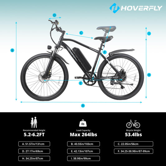 HOVERFLY OUREA 26" Electric Bike for Adults, 750W Peak Motor Mountain Ebike, 20MPH Up to 40 Miles, UL2849 Certified, 7-Speed, Removable Battery, Shock Absorber, Fat Tire Commuter E-Bike