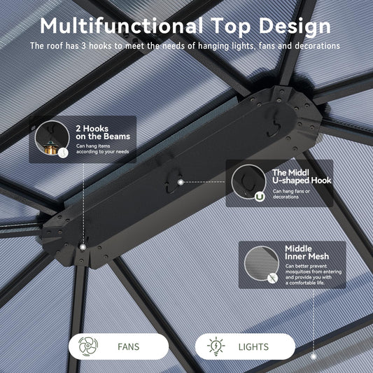 Aoxun 12'x14' Hardtop Gazebo, Aluminum Frame Permanent Pavilion with Curtains and Netting, Outdoor Polycarbonate Double Roof Canopy, Designed for Garden, Lawns, Patio, Gray