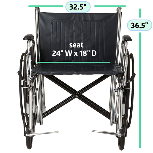Medline Excel Extra-Wide Bariatric Wheelchair For Adults and Seniors with 24" Wide Seat, Supports up to 500 lbs