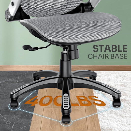 GABRYLLY Ergonomic Office Chair, High Back Home Desk Chair with Headrest, Flip-Up Arms, 90-120° Tilt Lock and Wide Cushion, Big and Tall Mesh Chairs for Man Woman, Grey Task Chair