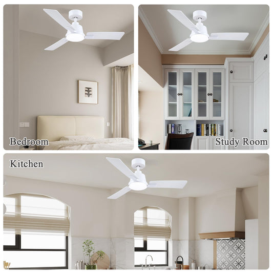 42 Inch Ceiling Fans with Lights,Low Profile Ceiling Fan,Modern Flush Mount,Reversible 6 Speeds,3CCT Dimmable Noiseless White Ceiling Fans for Living Room,Bedroom and Patio,ETL Listed