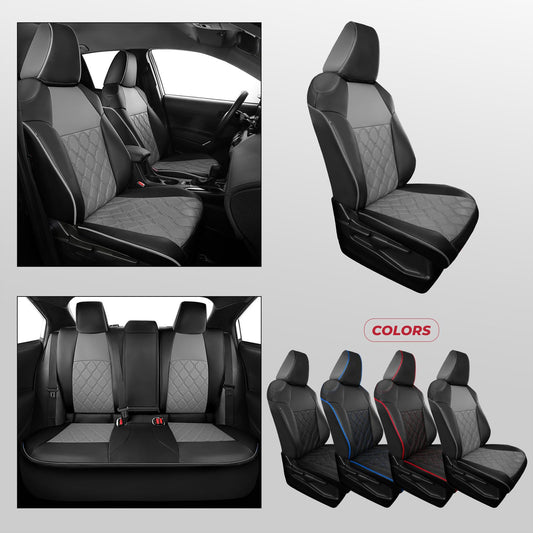 FREESOO for Toyota Corolla Seat Covers Hybird LE 2023 2024 2025, Custom Fit Car Seat Covers, Waterproof Car Seat Cover Protector Cushions, Luxury Leather Seat Covers for Cars, Black Gray Full Set