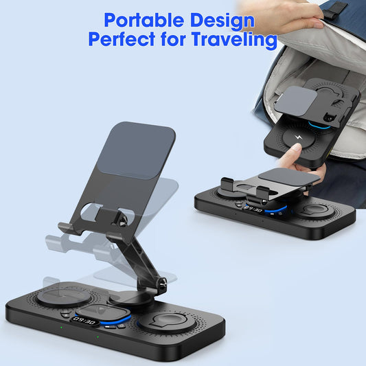30W Magnetic Wireless Charger for Samsung Foldable Android Mag-Safe Charging Station for Galaxy Tab with Clock &7 Color Light, Watch Charger for S25 Ultra, for Samsung Watch7, Galaxy Buds3 Pro(Black
