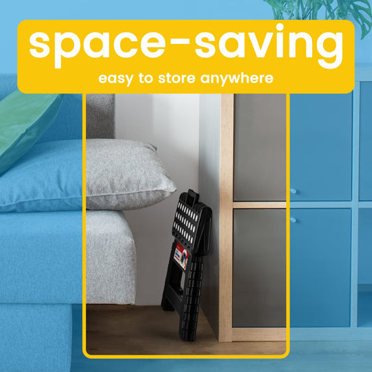 ACSTEP Folding Step Stool 9'' Tall Kids Step Stool Holds Up to 300 lb Plastic Foldable Step Stools for Kids Non-Slip Surface with Carry Handle Collapsible Stool for Home, Outdoor and Indoor(Black)