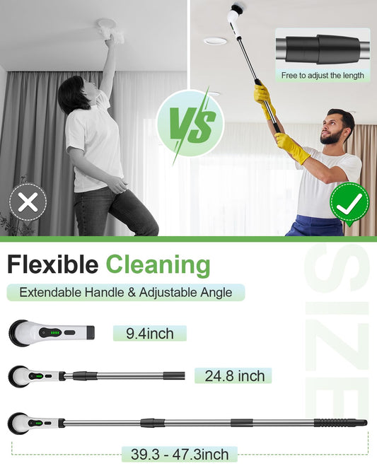 Electric Spin Scrubber, Cordless Cleaning Brush, Shower Scrubber with 8 Brush Heads 2H Power Dual Speed, Adjustable Extension Handle, IPX7 Waterproof for Tub Tile Floor Car, LX XP1
