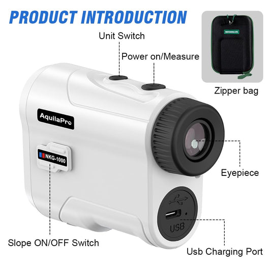AquilaPro NKG Golf Rangefinder with Slope, 1000 Yards, Rangefinder Golf, 0.5 Yard Accuracy, 7X Magnification, Flag Lock Vibration, Rechargeable Golf Range Finder