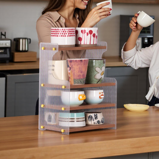 KAOTGOT Coffee Mug Holder Wooden Cup Station Organizer 4-Tier Cup Holder for Coffee Bar Mug Display Rack for Countertop Mug Holder Shelf for Home Kitchen Wood