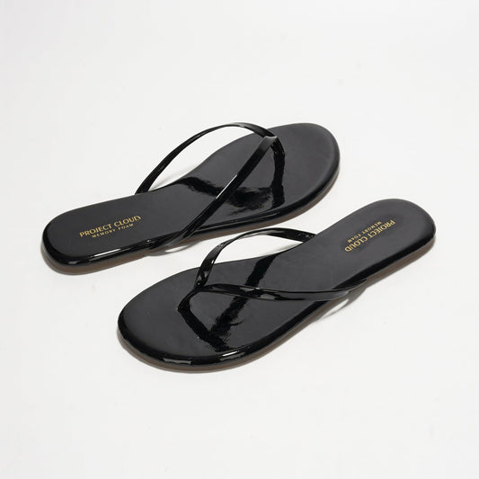 Project Cloud Flip Flops for Women - Memory Foam Flats Summer Sandals for Women 2025 - Vegan Leather Lightweight Womens Sandals Summer Beach Essentials Slides (Foundations, BlkPat, 8)