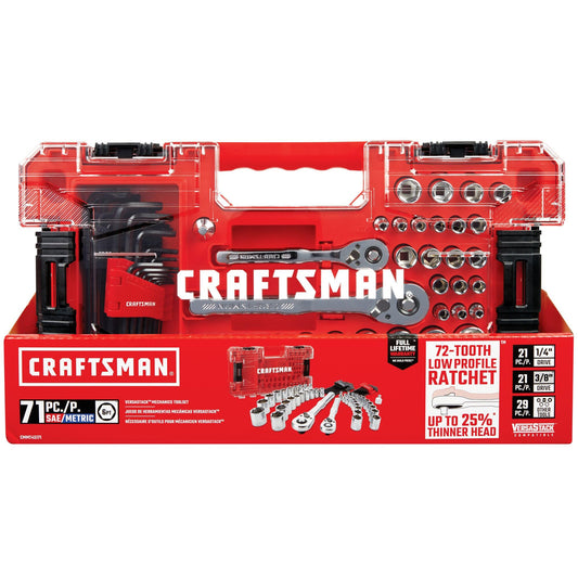CRAFTSMAN Versastack Mechanics Tool Set, 1/4 and 3/8 Inch Drive, 71 Piece (CMMT45171)